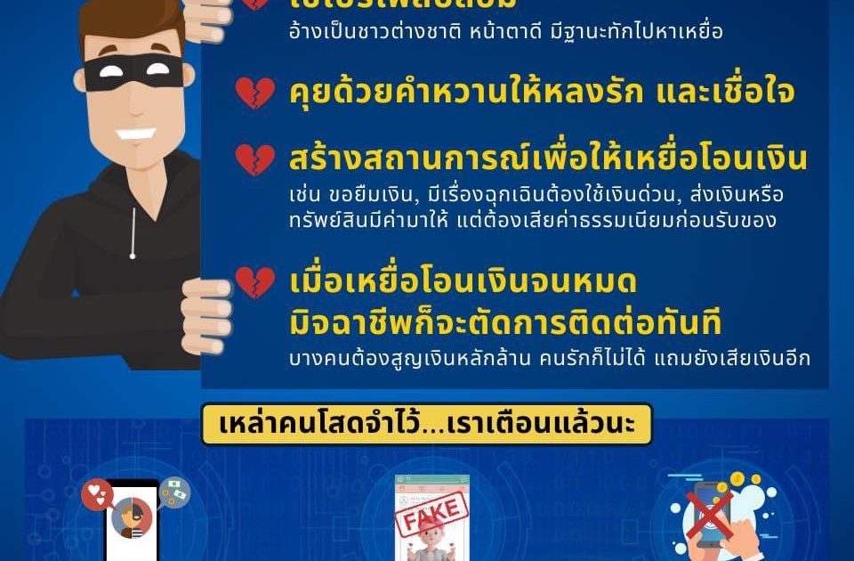 หลอกให้รัก หลอกให้โอน!! 30 พฤศจิกายน 2566 โดย admin / ข่าวประชาสัมพันธ์ จำนวนคนดู 61 FacebookFacebookXXLINELine