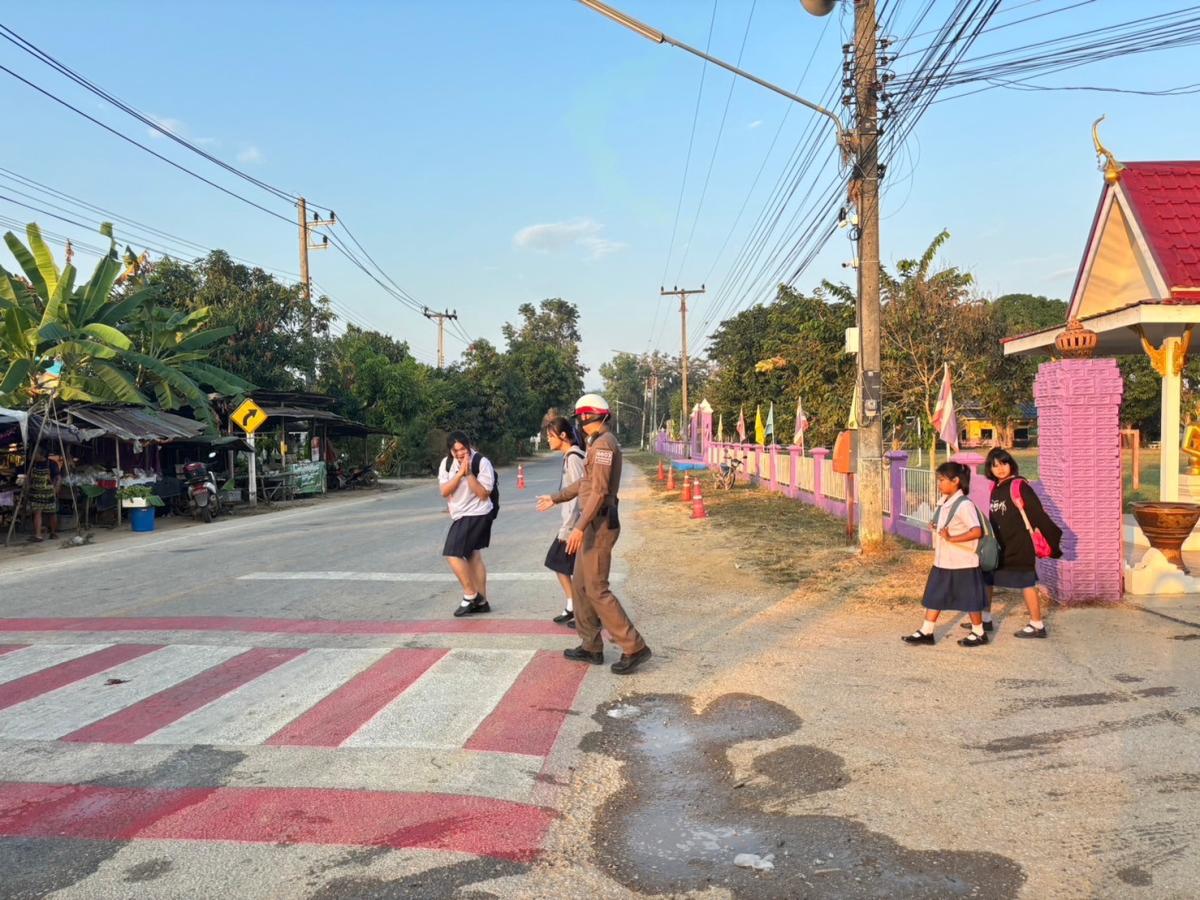 อำนวยความสะดวกด้านการจราจรบริเวณถนนหน้าโรงเรียนบ้านบึงหล่ม ตำบลคลองน้ำไหล อำเภอคลองลาน จังหวัดกำเเพงเพชร