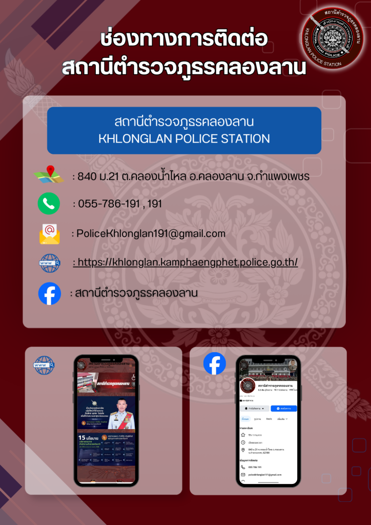 • ✉️อีเมล : PoliceKhlonglan191@gmail.com